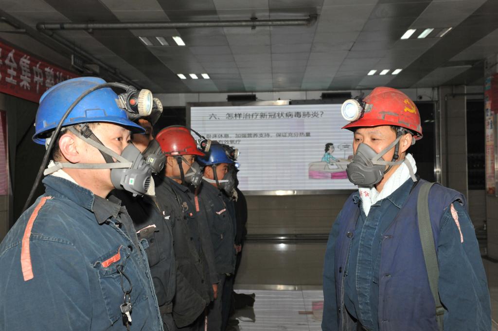 “大家工作期间严禁摘口罩,把工作服扣好不要着凉,特殊时期大家要照顾好自己的身体,这样才能多出煤,支援矿井建设”综采一区区长李德彦在班前会上关切的告诉每一名职工。