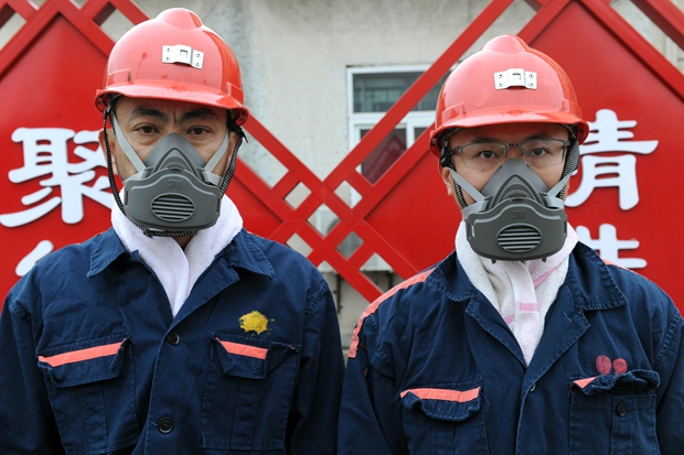(图为朱仙庄矿职工正确佩戴防尘口罩入井。朱安 摄)