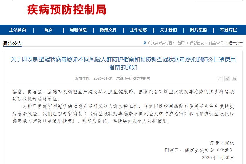 近日,国务院应对新型冠状病毒感染的肺炎疫情联防联控机制(疫情防控组)发布 《关于印发新型冠状病毒感染不同风险人群防护指南和预防新型冠状病毒感染的肺炎口罩使用指南的通知》明确说明: