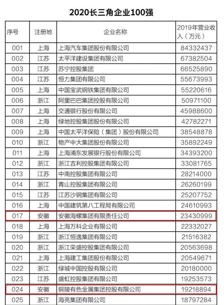 该榜单以2019年企业营业收入为入围标准,由长三角三省一市企业联合会共同发布。今年是第二次发布长三角企业百强排行榜,入围门槛是563.8亿元,比上年提高了54.5亿元。今年我省共有9家企业上榜,除电竞博彩app