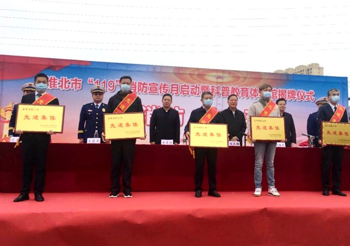 11月5日上午,在淮北市“119”消防宣传月活动启动暨市消防科普教育体验馆揭牌仪式上,电竞博彩app 荣获“全市消防工作先进集体”称号。