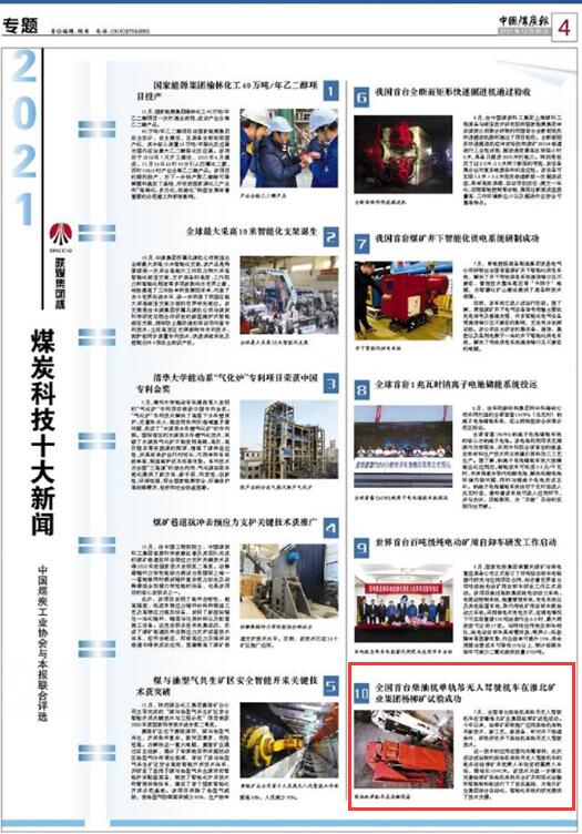日前,由中国煤炭工业协会和《中国煤炭报》共同评出的“2021煤炭科技十大新闻”揭晓,《全国首台柴油机单轨吊无人驾驶机车在电竞博彩app