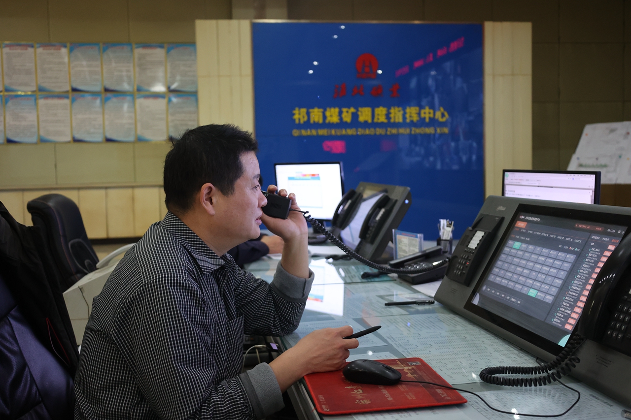 “喂!过年好。你好!我是矿调度给咱们井下职工拜个年,你们注意安全哦。”虽然蒋明耀是安徽宿州人,但今年是他在岗位上度过的第5个春节。他说,自己新年里最大的愿望就是父母可以不用那么劳累,保重身体。
