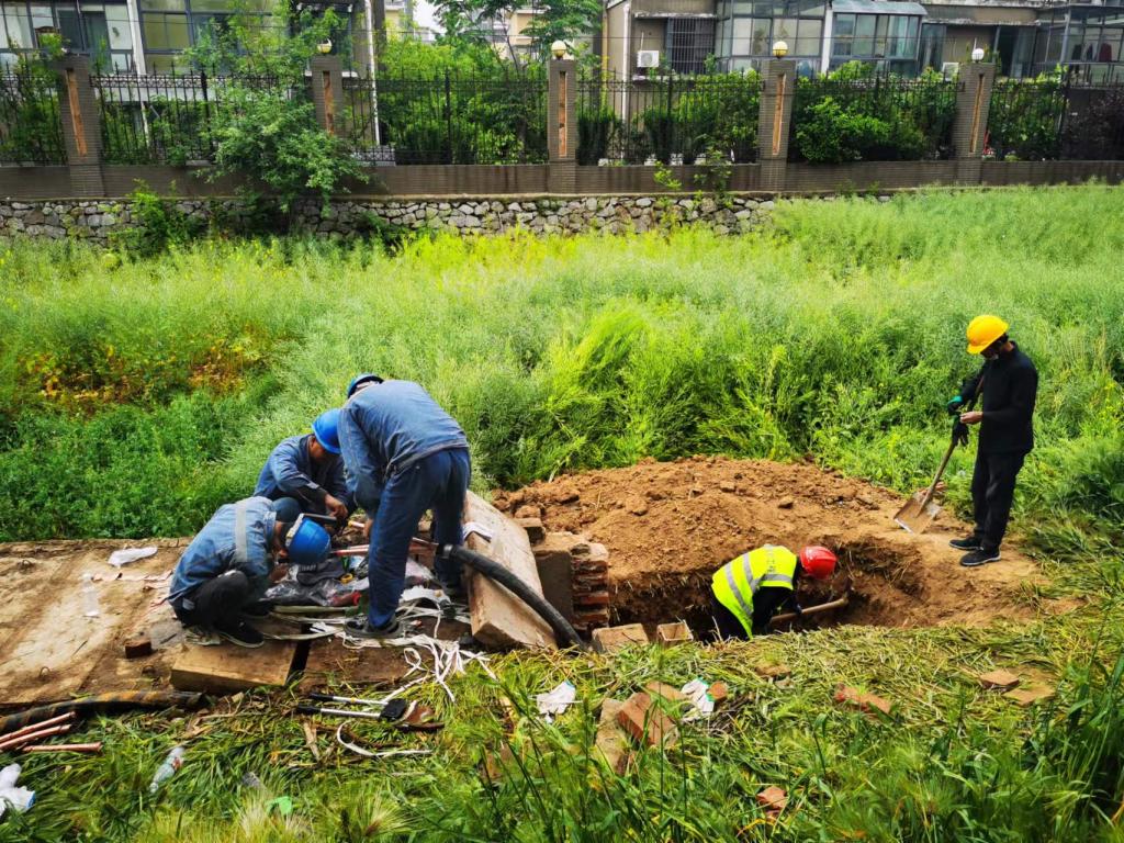 机电运营服务公司及时处理供电线路故障,组织人员重新砌筑桓谭公园南侧119线路电缆井,确保办公中心供电安全。