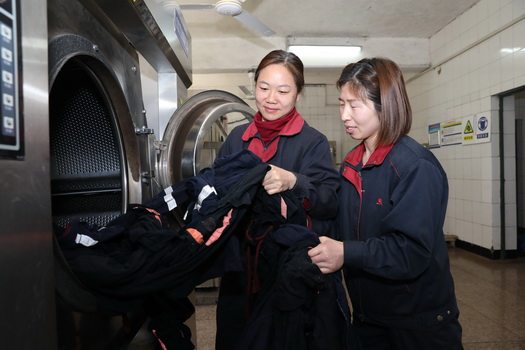 物业公司女工丁翠玲、赵文芳清洗工作服