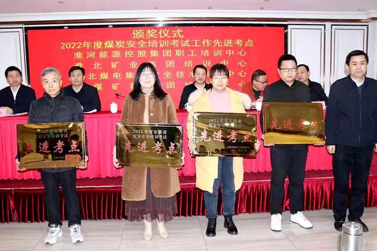 安全技术培训中心被评为安徽省“先进考点”,同时,袁店一矿等6家单位获得“先进单位”荣誉称号,高素芹等被评为“先进个人”,盛绍莉荣获征文活动一等奖。会上,淮北煤电技师学院代表先进考点作了现场发言。
