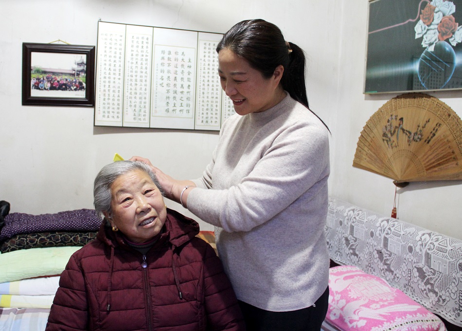 黄海英公婆一共有5个子女,只有她夫妻俩个在本地工作。因此,婚后黄海英便主动承担起赡养老人的义务。2021年,她公公突发脑梗,黄海英每天忙前忙后地照顾公公,喂饭、按摩、守夜,在她的精心照料下公公身体逐渐好转。