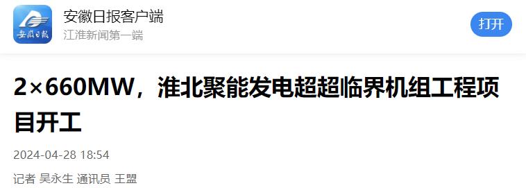 高质量发展注入新动能,对于推动淮北市煤电一体化、基础能源产业和清洁高效电力发展具有重要意义。(吴永生 王盟)
