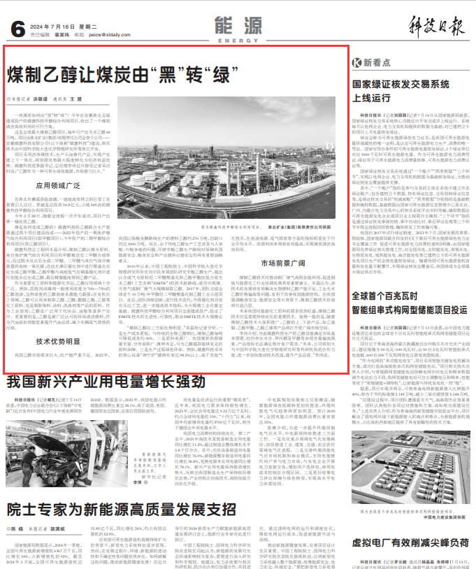 2010年以来,中国工程院院士、中国科学院大连化学物理研究所所长刘中民率领团队研究非粮乙醇生产,提出以合成气为原料经二甲醚羰基化和乙酸甲酯加氢合成无水乙醇(工艺名称“DMTE”)的技术新路线,成功实现煤、天然气或钢厂煤气大规模制取乙醇。2017年,团队完成全球首个10万吨/年甲醇经二甲醚羰基化制乙醇工业示范项目。此后,团队持续创新,进行技术迭代,升级催化剂并优化反应工艺,进一步提高技术指标,为大规模工业化奠定基础。碳鑫科技甲醇综合利用项目全面建成投产,验证了DMTE技术的先进性、可靠性,推动DMTE技术大规模应用。