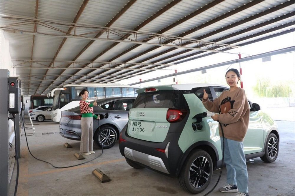 桃园矿职工在矿内为新能源私家车充电。(陈敏奎 摄)