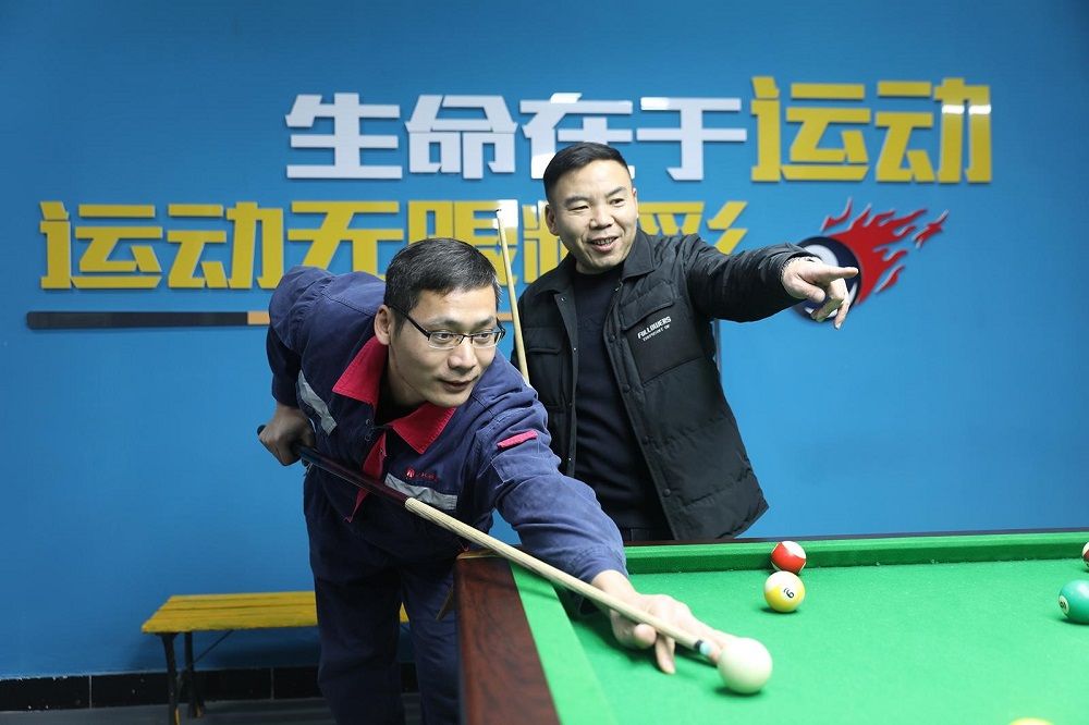 下班后,袁店二矿职工在活动中心休闲娱乐。(王连生 摄)