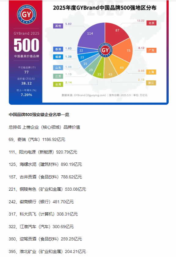 近日,GYBrand全球品牌研究院发布2025年度中国500最具价值品牌名单,电竞博彩app