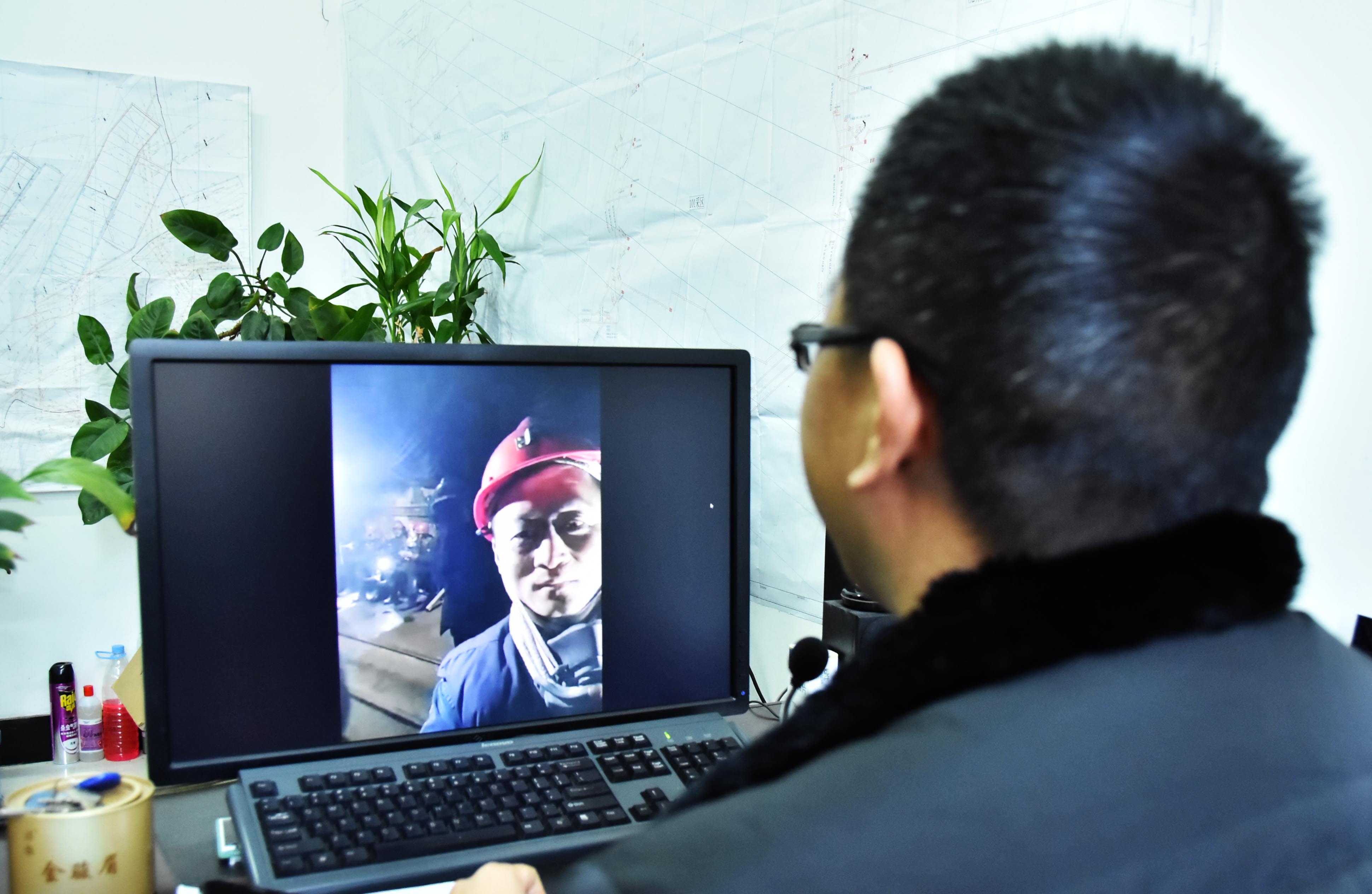 管理人员在地面通过单兵装备与井下工作人员视频连线