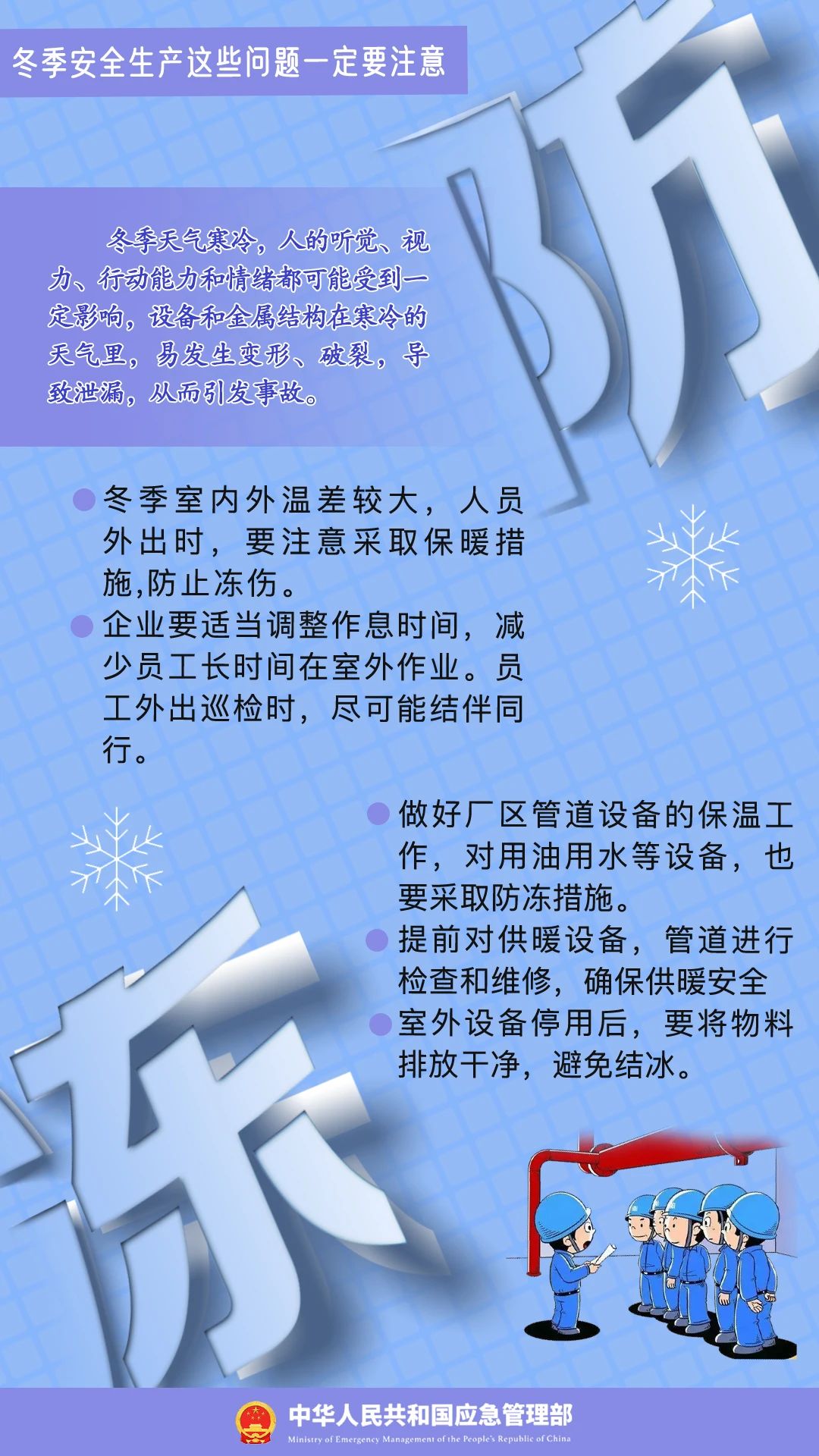 冬季寒冷、干燥,容易发生冻伤、中毒、滑跌等人身伤害事故,给企业安全生产带来影响。冬季安全生产要注意哪些问题?一起学习↓↓↓